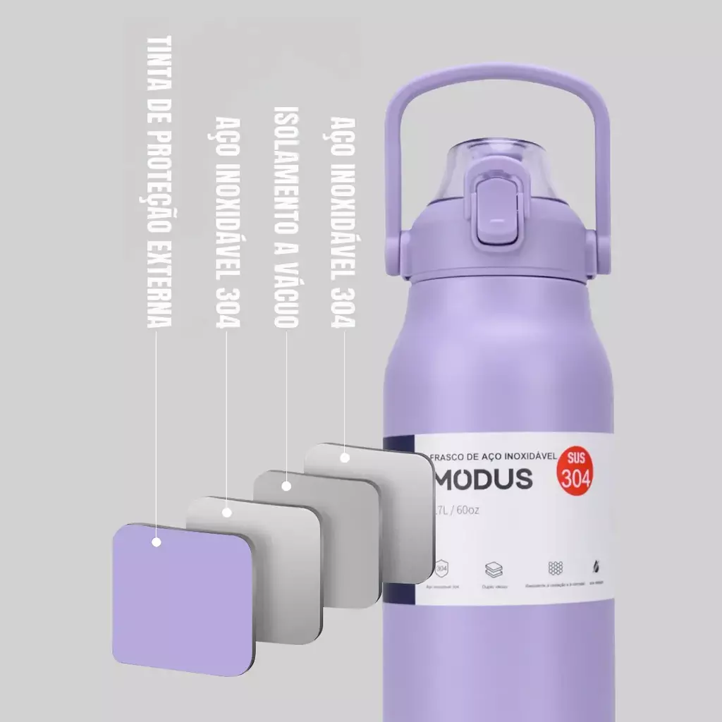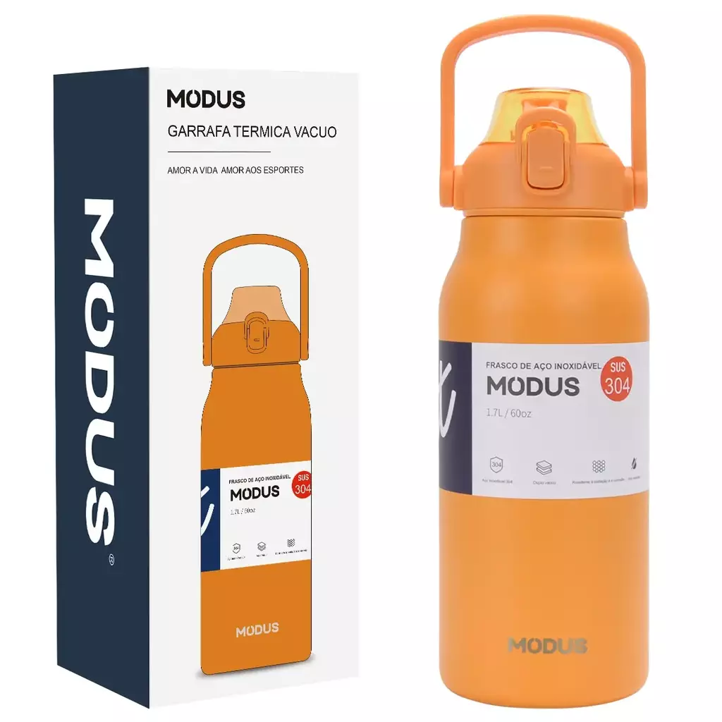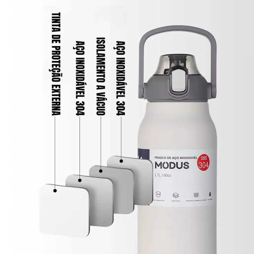 A Garrafa Térmica MODUS 1.7L é feita em aço inoxidável 304 de alta qualidade, garantindo durabilidade, resistência e excelente desempenho térmico.