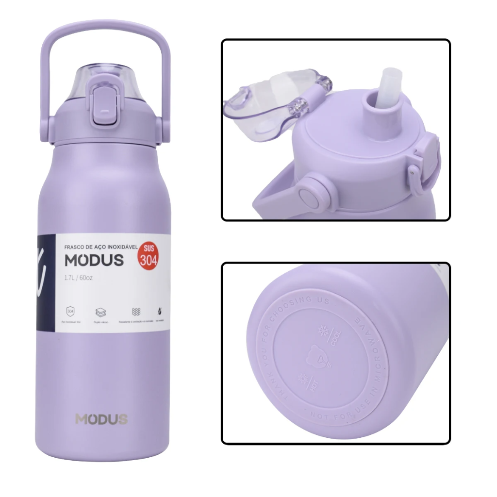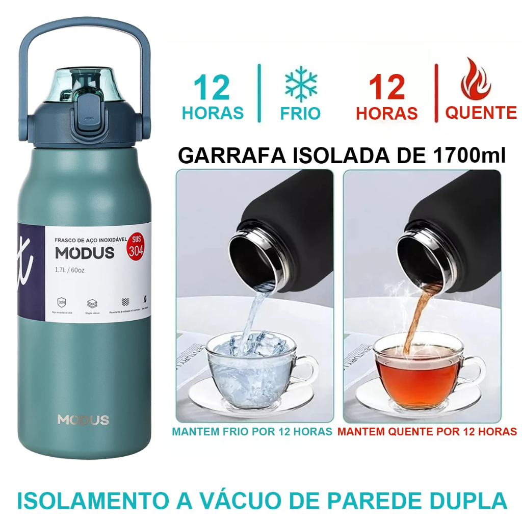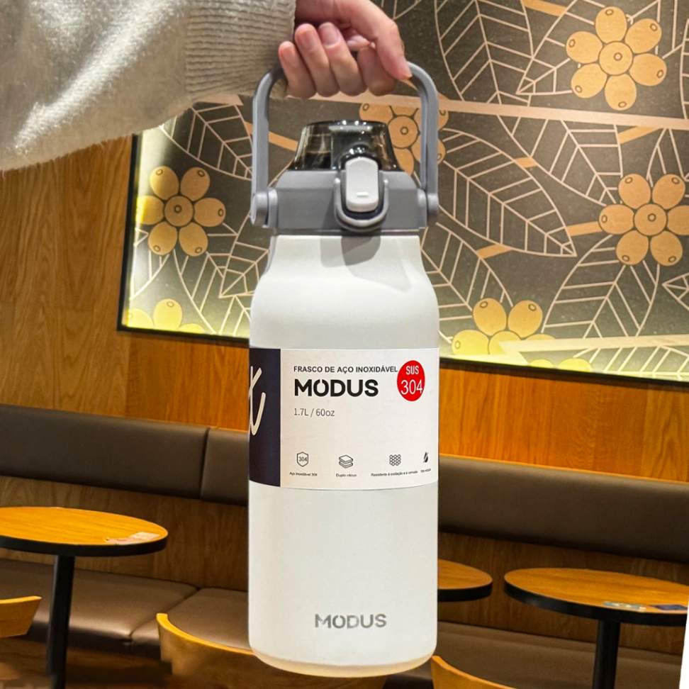 Garrafa Térmica de Aço Inoxidável MODUS 1.7L – Alta Capacidade, Mantém Bebidas Frias ou Quentes, Tampa com Alça e Base Antiderrapante