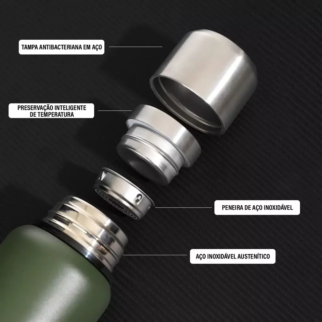 Aço inoxidável 304 de alta durabilidade e sem gosto metálico.