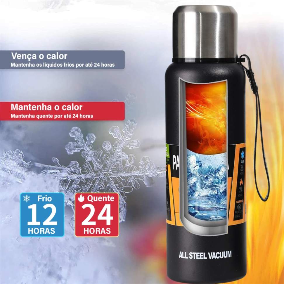 Garrafa Térmica de Aço Inoxidável Parede Dupla – Mantém Bebidas Quentes ou Geladas por Até 12h