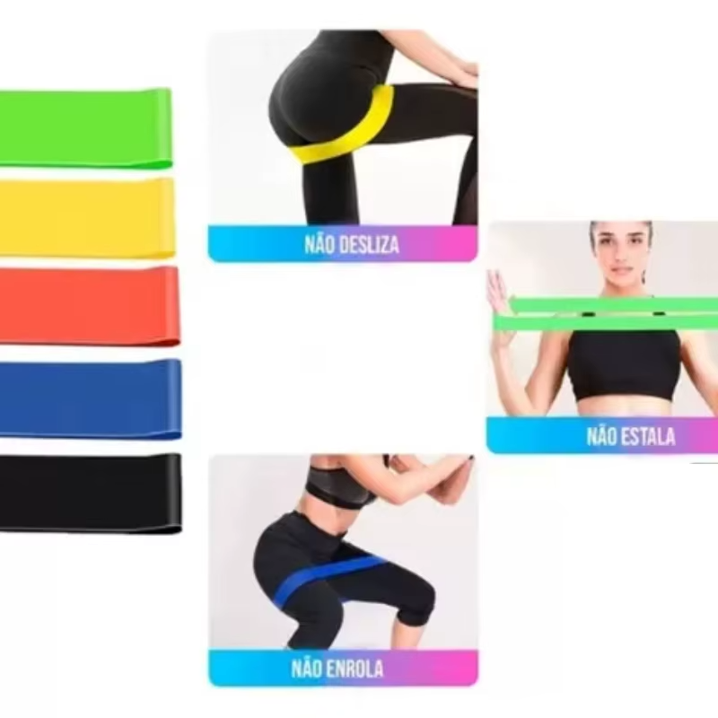 Kit 5 Faixas Elásticas Mini Band – Transforme Seu Corpo em Casa ou na Academia