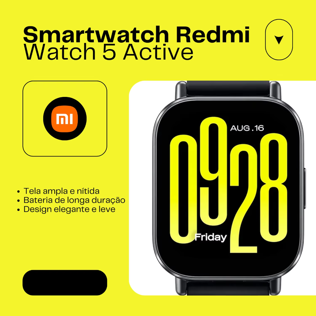 Smartwatch Xiaomi Redmi Watch 5 Active – Seu Treino, Seu Ritmo, Sua Melhor Versão!